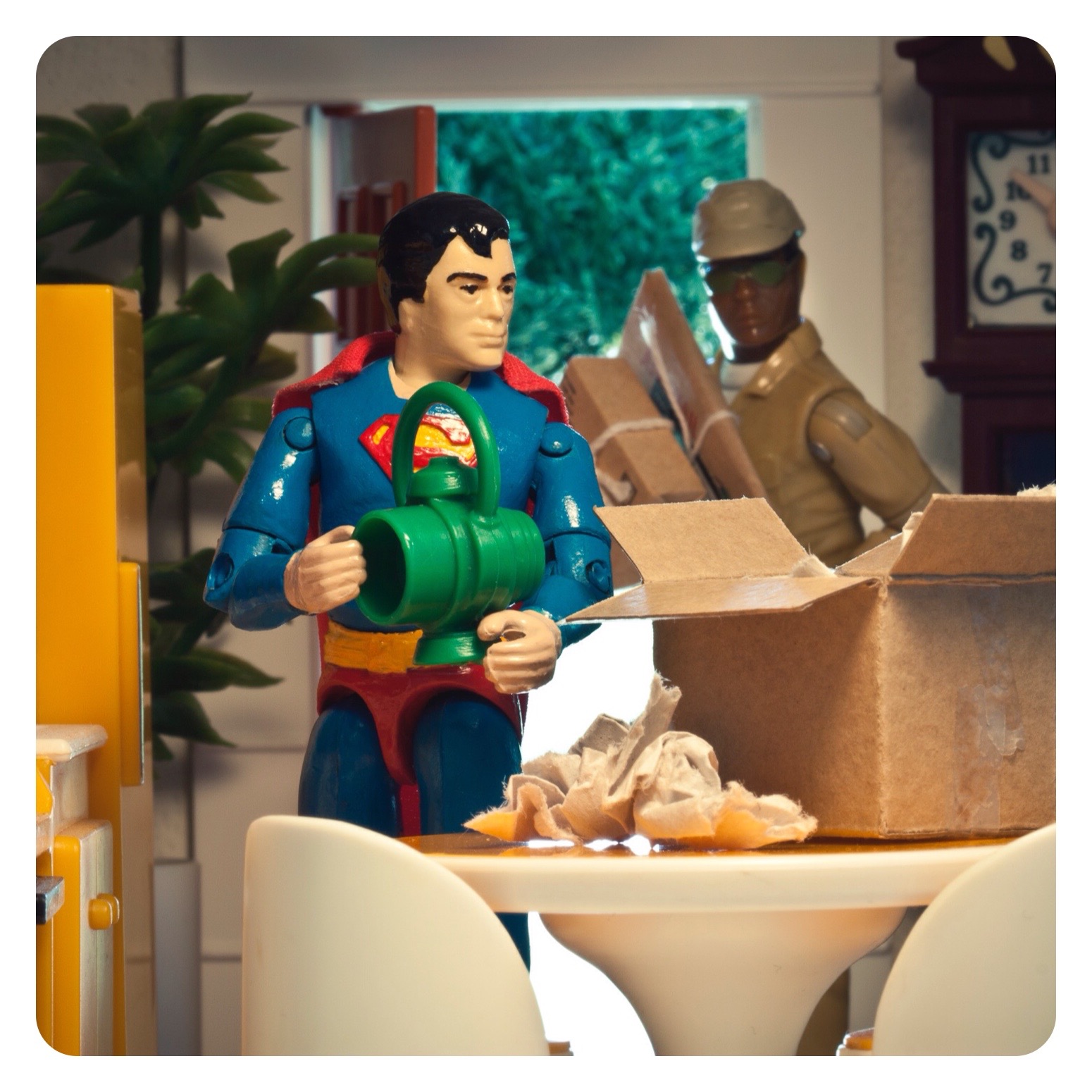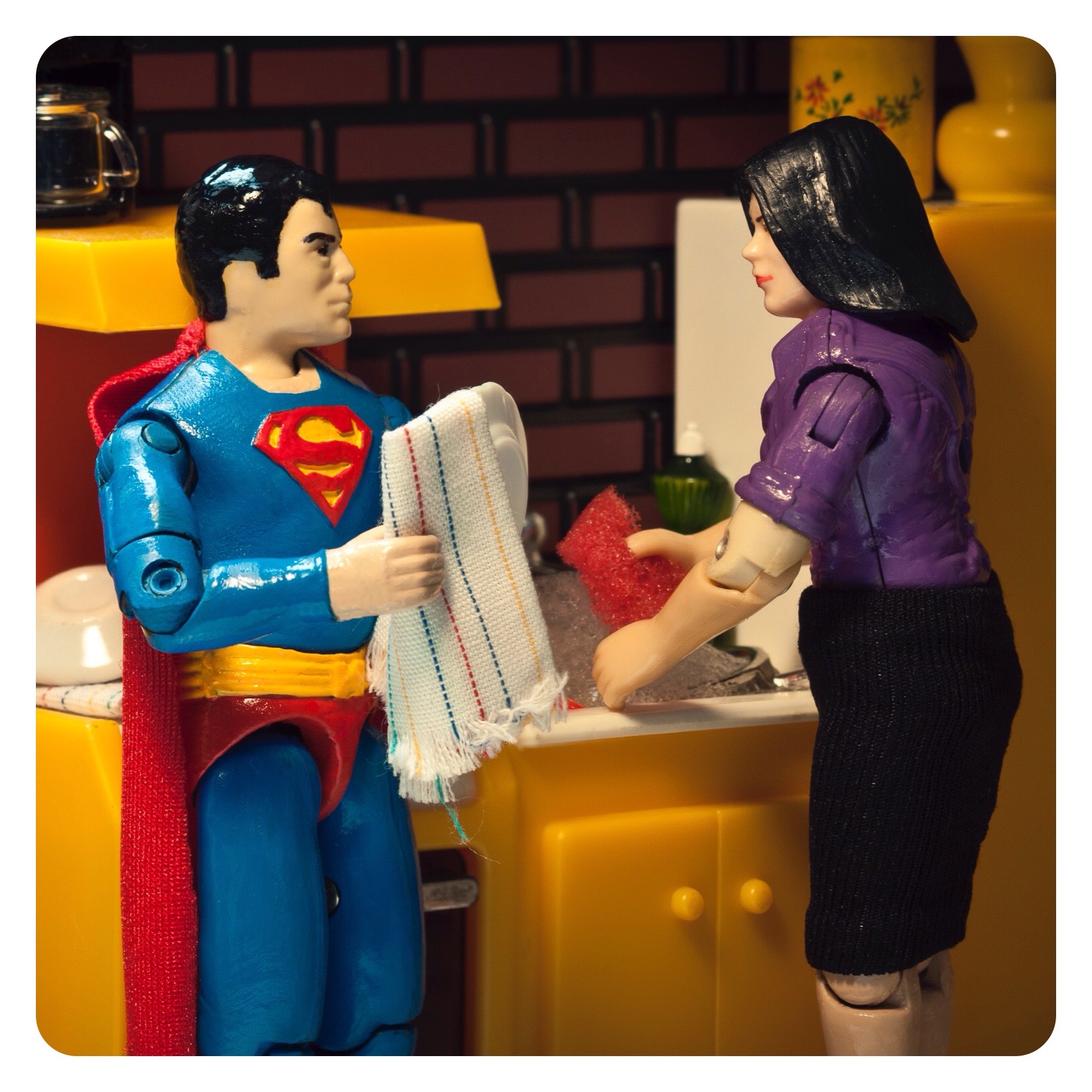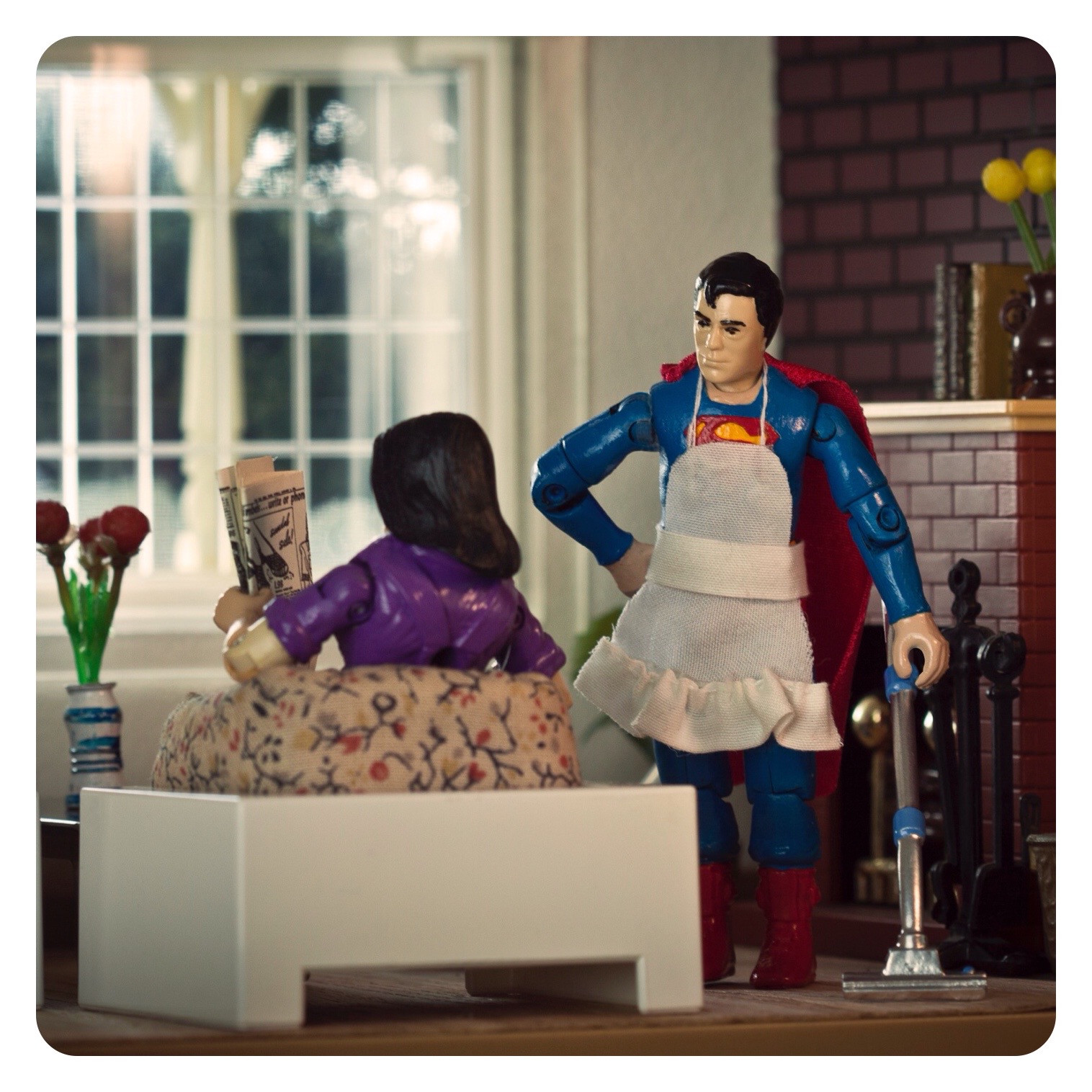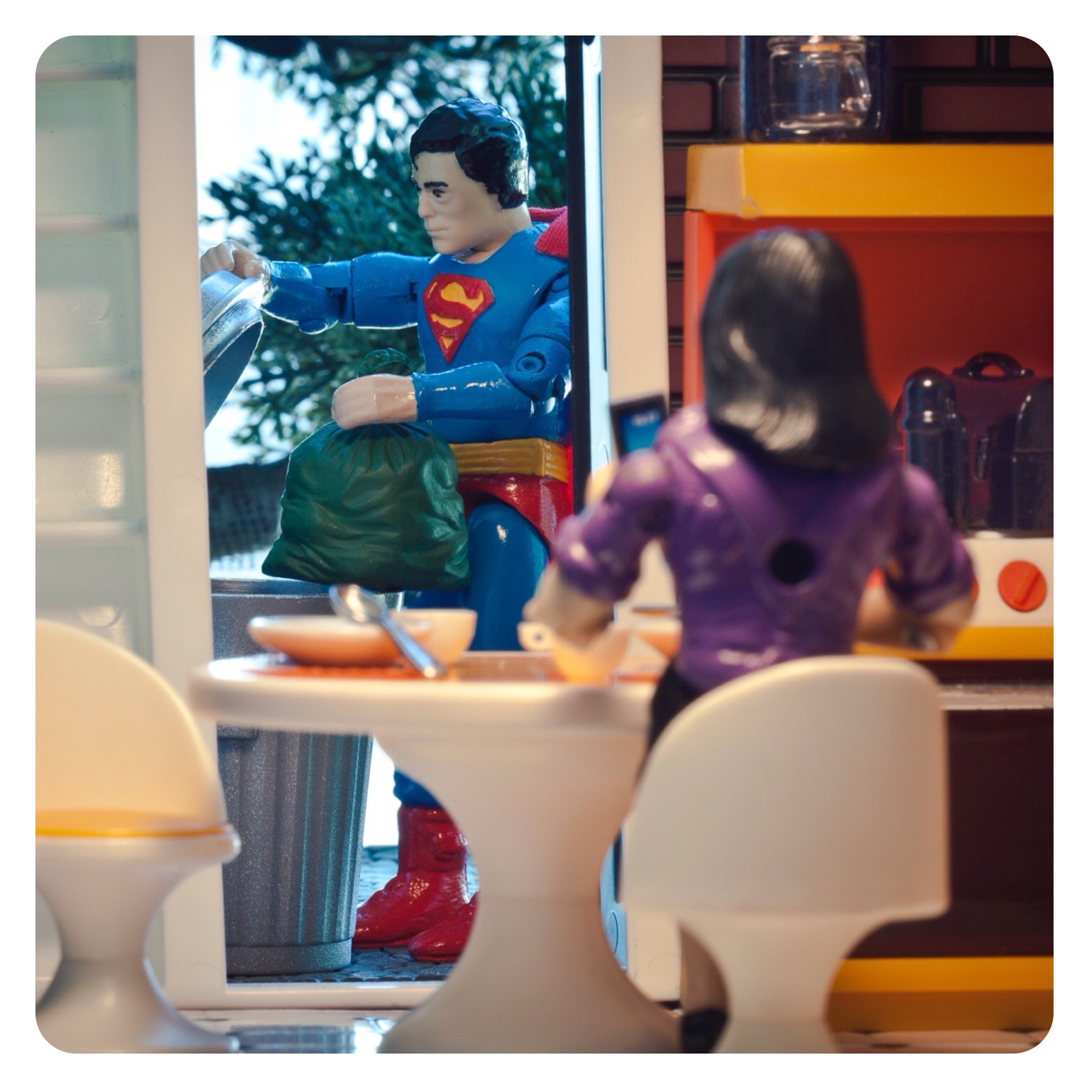Welcome to my year-long photo series called At Home with the Super Neumanns. Starting October 1, 2015 and continuing for the next 365 consecutive days, I posted photos that star a special 3 3/4″ action figure couple. The story? What is everyday life like for a super couple?