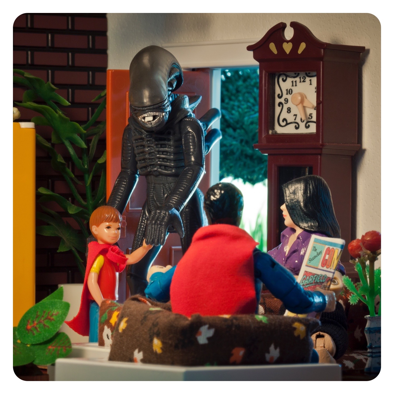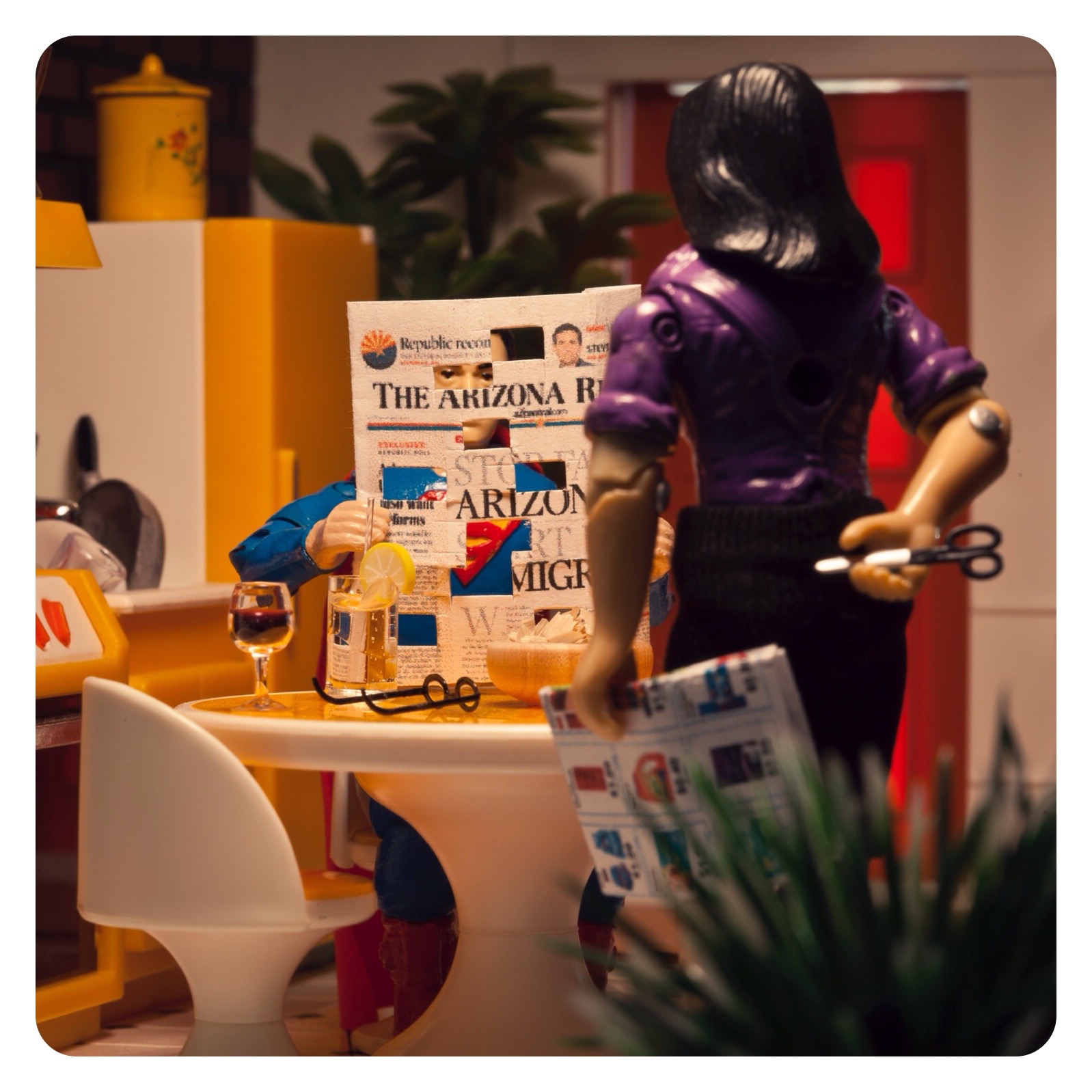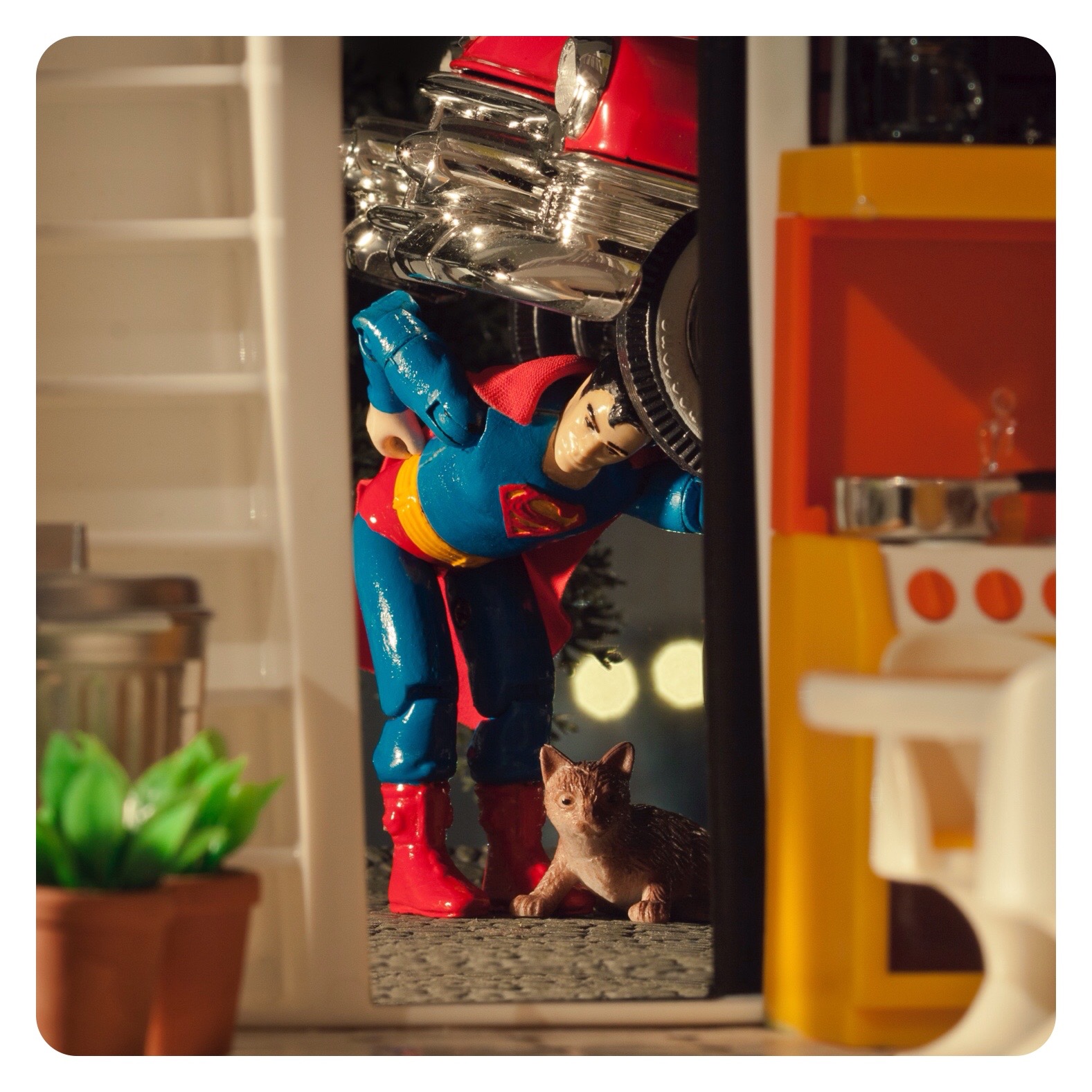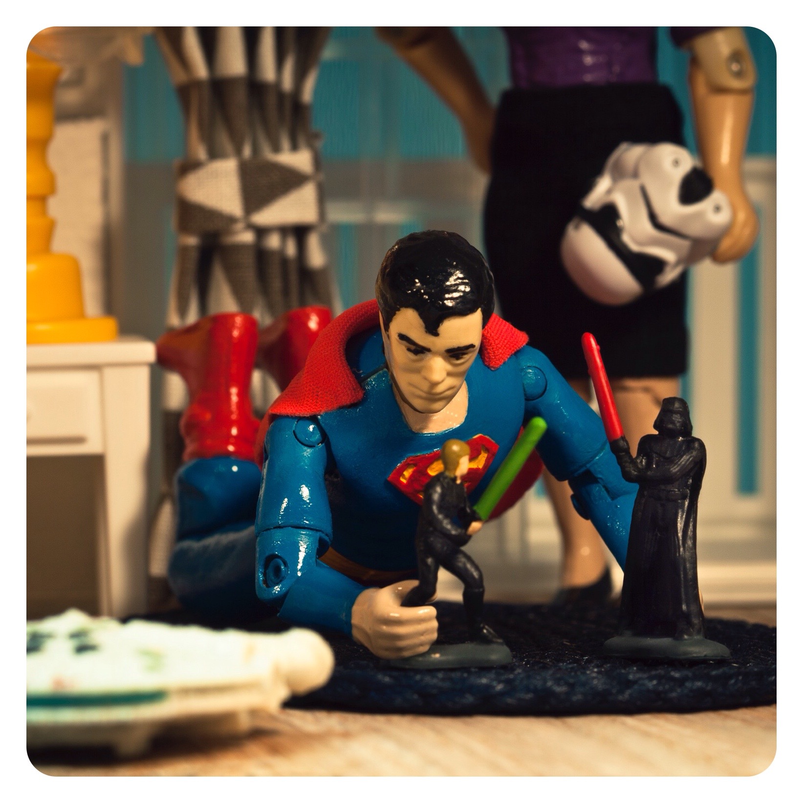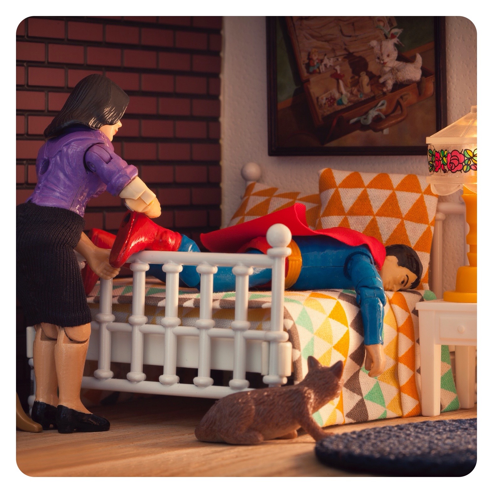Welcome to my year-long photo series called At Home with the Super Neumanns. Starting October 1, 2015 and continuing for the next 365 consecutive days, I posted photos that star a special 3 3/4″ action figure couple. The story? What is everyday life like for a super couple?